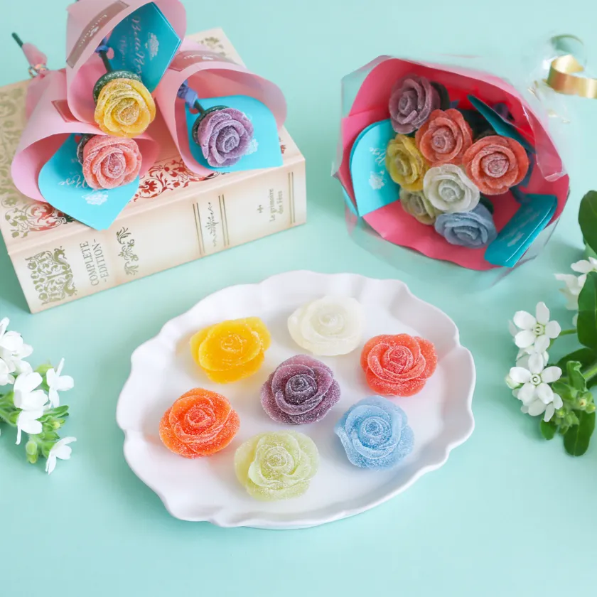 ぜひお花屋さんが作る美しいグミで贅沢なひとときをお楽しみください。