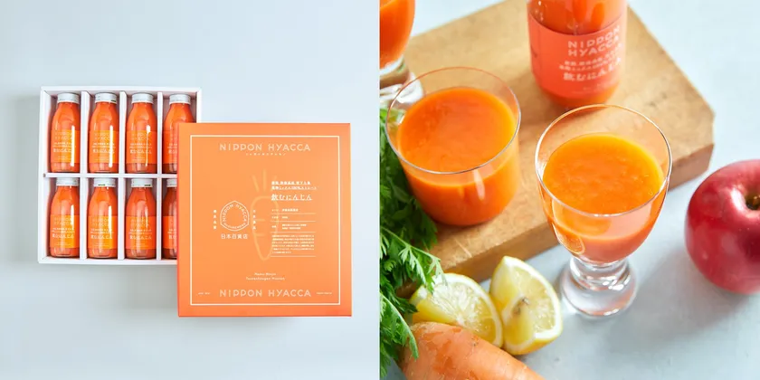 自然の恵みの雪を活かし人参ジュースを作り続けている「津南高原農産」。地元で採れた人参を雪室で60日以上寝かせることで、特有の青臭さが消え、人参本来の甘さを引き出しています。人参は丸ごと絞って、繊維を残し、水を一切加えていないので、すりおろした人参を飲んでいるような食感を楽しめます。