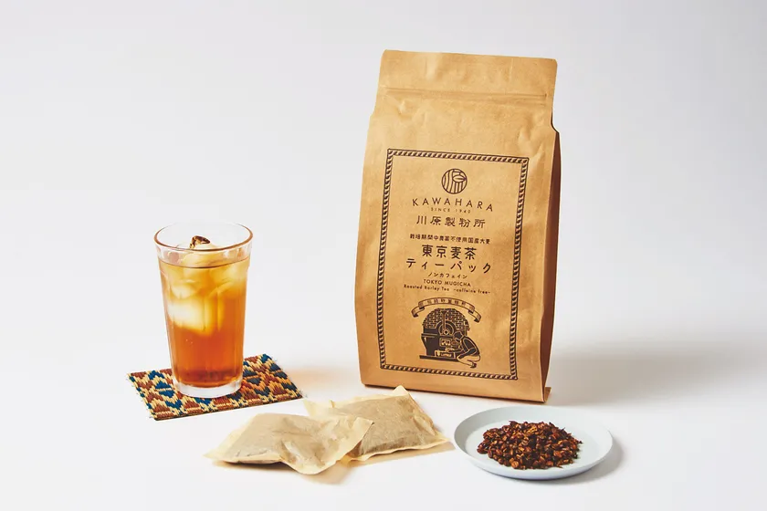 高品質な六条大麦を、川原製粉所がこだわる伝統の「砂釜焙煎」製法で仕上げた麦茶。水出しでも色が濃く香ばしい香りが特徴です。ノンカフェインなので、お子様から妊娠中の方、ご年配の方まで、みんなでお楽しみいただけます。