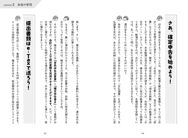 開業する前の準備、確定申告や税金・控除のあれこれ、フリーランスこそやっておくべき資産運用の話、お金で損をしない節約術など、本書を読めば何が必要で何が必要でないのかがすぐに理解できます。