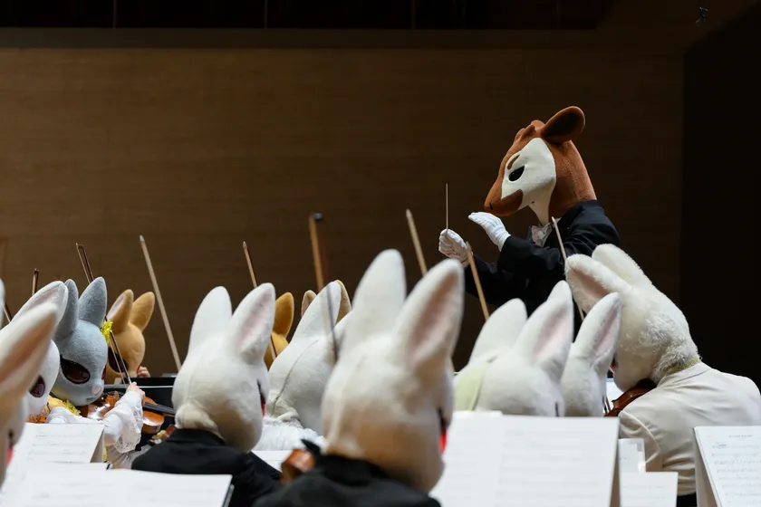 「弦うさぎ」(うさぎの弦楽四重奏)「サキソフォックス」(キツネのサックス四重奏)といった動物の仲間たちと行う、親子のためのコンサート「音楽の絵本」は、全国各地のホールで話題となり、海外公演も含め年間約150を数えます。2011年にはオーケストラ「ズーラシアンフィルハーモニー管弦楽団」を結成。これまでのコンサートから更に一歩踏み出し、慣れ親しんだ音楽をより交響的に紡ぐ「シンフォニック童謡」をテーマに展開。子どもたちのクラシック音楽への興味を一層高めています。