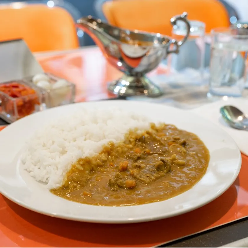 食堂車で人気を博したビーフカレーと再現された100系食堂車メニュー表で、食堂車が営業されていた当時の思い出が蘇ります。当時親しまれていた味を、是非ご家庭でお楽しみください。