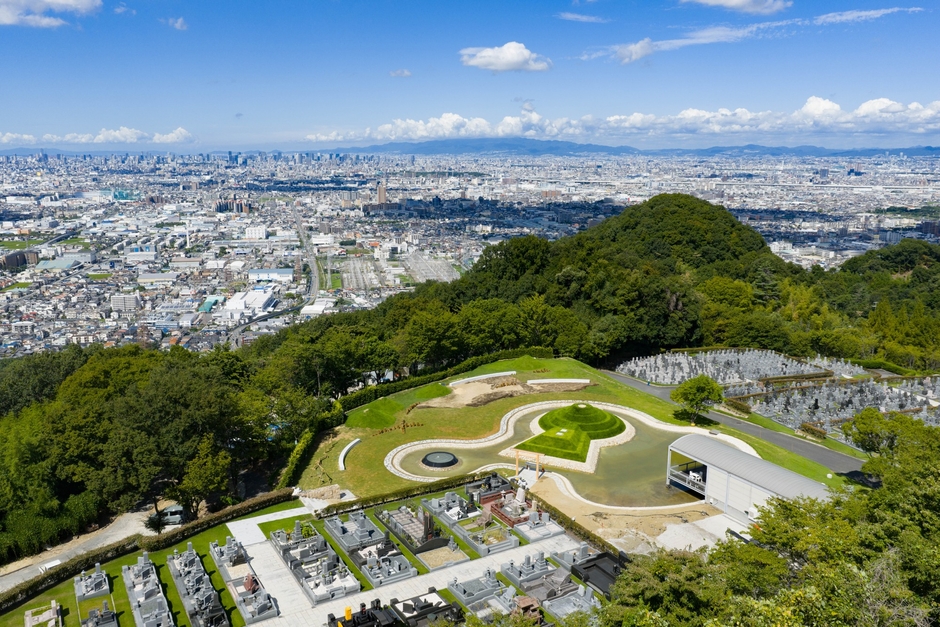 本イベントの対象となる「大阪メモリアルパーク古墳墓」は、生駒山中腹の高台から大阪平野を一望できる、関西でも唯一無二のロケーションに位置しています。「お墓のグランプリ関西1位」に選ばれた実績を持つ当霊園内に、世界的建築家・安藤忠雄氏監修のデザイン空間と、日本の伝統である前方後円墳を融合させた、新しい祈りの聖域です。