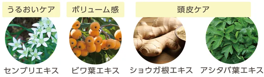 紫外線やヘアカラーによる頭皮のダメージは、うねりの原因となります。うねり対策に着目し、18種類の植物成分、96.5%の天然由来成分を配合しました。また、乾燥・エイジングケアなどに特化した成分がヘアサイクルの重要なポイントに働きかけることにより、髪の毛のうねり・パサつきを抑える頭皮環境に整えていきます。