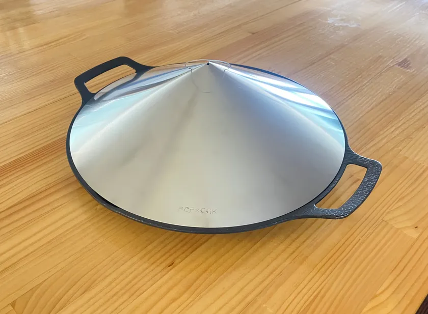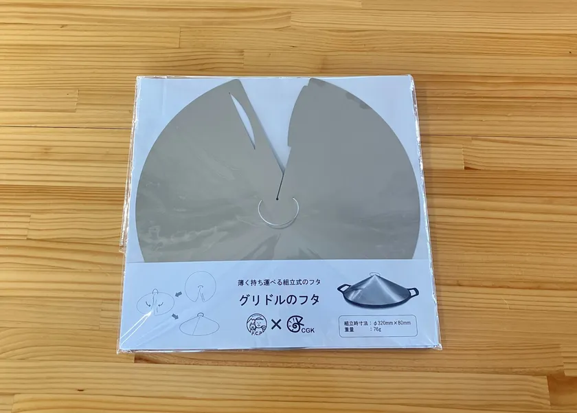 YouTuber FUKUさんと、キャンプに持っていきやすいようにかさ張らないフタを作りたいという思いから始まった商品で、CGK商品の特徴であるペラペラなステンレスを使って組立式のフタとして実現させました。キャンプシーンで定評のあるマルチグリドルを想定したサイズで開発しました。