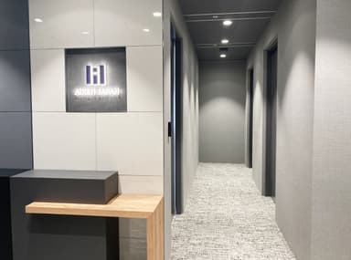 内装は黒を基調とし、落ち着いた雰囲気でご来社いただく方をお迎えします。