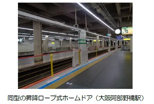 今般、駅ホームの更なる安全性向上のため、大阪線 鶴橋駅の2番線ホームに昇降ロープ式ホームドアを設置します。本年7月から順次工事を進め、2025年3 月末に完成を予定しています。