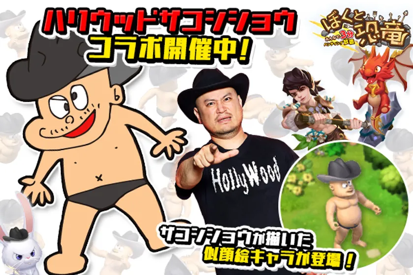 ハンティング放置RPG 「ぼくと恐竜~みんなで3分ハンティング放置」に 大人気お笑い芸人ハリウッドザコシショウが登場