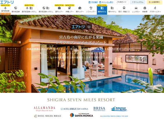 One Asiaのビジョンをかかげ、ITの力で、エアトリ旅行事業、訪日旅行事業・Wi-Fiレンタル事業、ITオフショア開発事業、ライフイノベーション事業、ヘルスケア事業と投資事業を手掛ける株式会社エアトリ(本社:東京都港区、代表取締役社長 兼 CFO:柴田 裕亮、証券コード:6191、以下当社)は、当社が運営する総合旅行プラットフォーム「エアトリ」(https://www.airtrip.jp/)の国内航空券+ホテル(エアトリプラス)、国内ホテル、及び当社グループ会社の株式会社らくだ倶楽部(本社:東京都港区、代表取締役社長:二井矢 祥)が運営する高級旅館・高級ホテル予約サイト「らくだ倶楽部」(https://www.rakudaclub.com/)にて、2021年4月19日(月)より、株式会社南西楽園リゾート〈ユニマットグループ〉(本社:沖縄県宮古島市、代表取締役社長:髙橋 洋二)が運営するシギラセブンマイルズリゾートの7つの宿泊施設の取り扱いを開始いたしました。