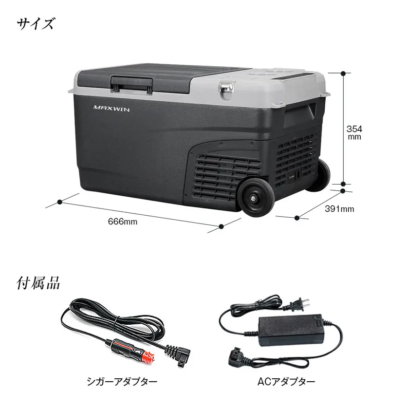 電源の場所で利用の必須アイテムでMAXWINの車載冷凍冷蔵庫「K-IBOXシリーズ」に適合します。