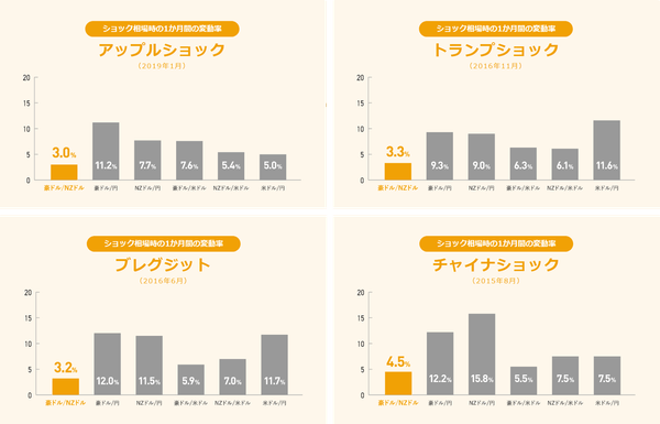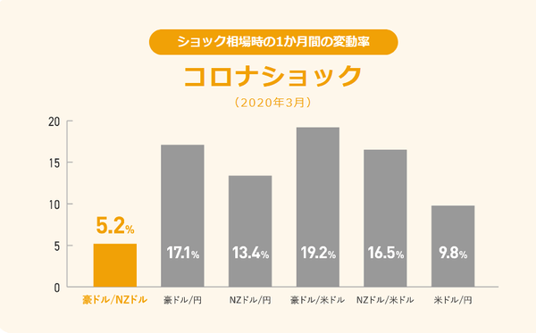 ・「豪ドル/NZドル」はショック相場における変動率が低い=ロスカットになりにくい