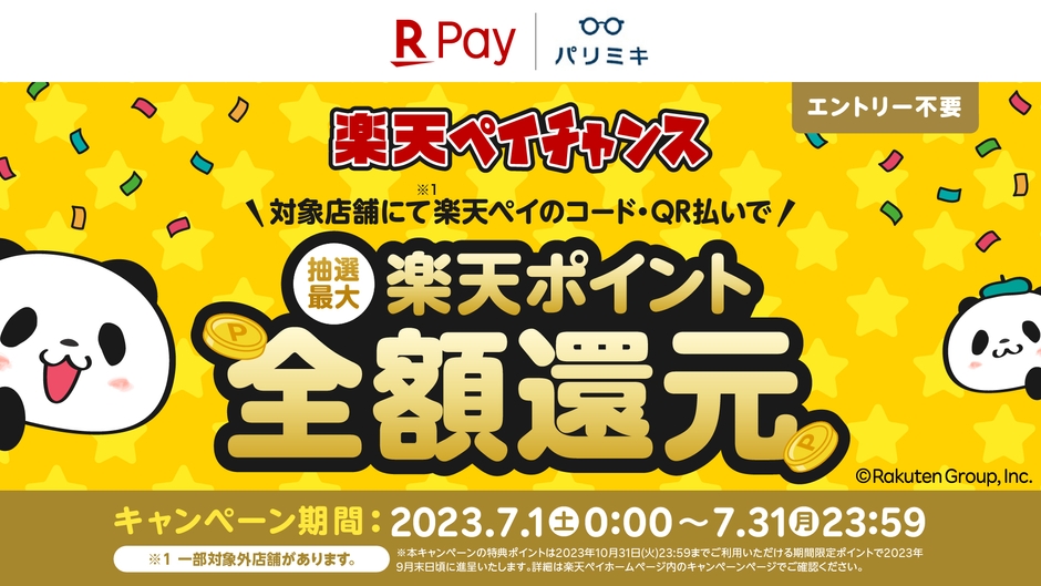 抽選で最大 楽天ポイント全額還元! 楽天ペイ×パリミキ「楽天ペイチャンス」 2023年7月1日(土)スタート!
