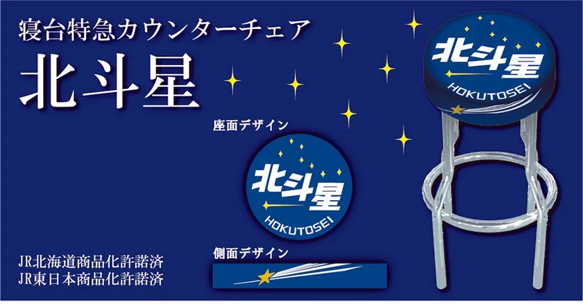 世代を超えて愛される寝台特急「北斗星」、「カシオペア」、「あけぼの」をカウンターチェアに!鉄道ファンでなくても、家族、親子で楽しめるデザインになっています。