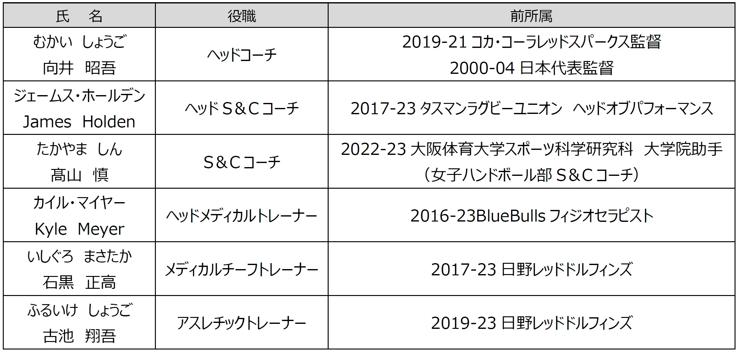 新加入選手および新加入スタッフのお知らせ