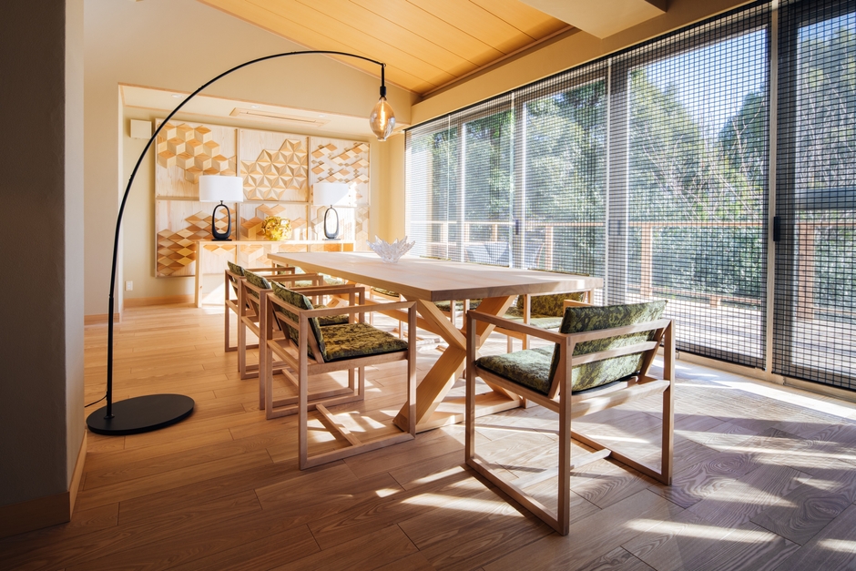 ダイニングには大きな窓とその先にテラスを備え、海を見渡す景色を楽しめます。