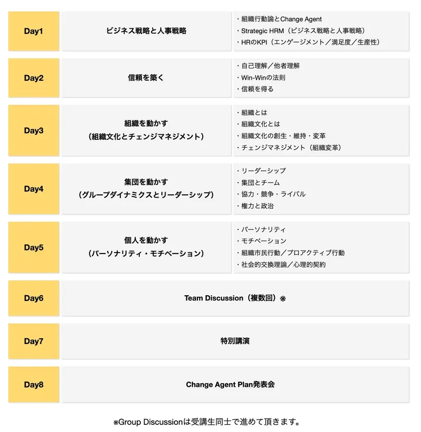 当プログラムは、組織行動学と組織変革(チェンジマネジメント)を体系的に、アカデミックに、実践的に学べる日本唯一のライブ形式オンライン講座となっております。組織行動学の理論や実践的な手法を学びながら組織変革の全体像とプロセスを理解し、個人や集団の理解を深めることで実践的なアクションプランの構築に取り組むことができますので人事プロフェッショナル並びに組織変革をリードする経営者・管理職の方にもお勧めの講座です。