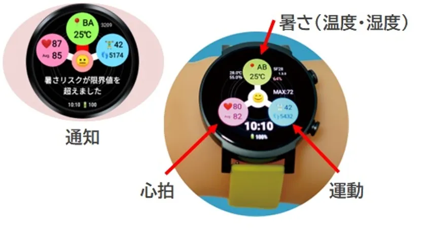 ・クラウド環境を必要としないため、スマートウォッチ単体でセンシングデータを記録、分析、見える化を実現。