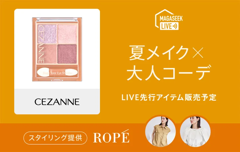 総合ファッションECサイト「MAGASEEK」にて 「CEZANNE×KATE×ROPE'」の人気商品を使用した 夏メイクで楽しむカジュアル&甘めスタイルを 「Tig LIVE」でご紹介!