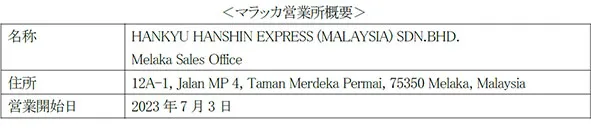 当社マレーシア法人であるHANKYU HANSHIN EXPRESS (MALAYSIA) SDN.BHD.は、マレー半島南西部のマラッカに新たに営業所を開設し、7月3日より営業を開始します。