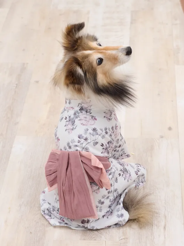 スウィートマミーは「ベビーと同じようにペットも大事な家族」という考えかたのもと、レディースやキッズサイズにとどまらず、ベビー、ペットまで展開。家族みんなでのお揃いが叶います。さらに、どのサイズも一番美しく見えるよう、ベビーとペット用に浴衣の柄を調整しました。