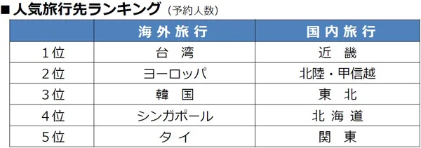 人気旅行先で1位となった近畿は、日帰りバスツアーが牽引しました。2位の北陸・甲信越では、長岡の花火大会を鑑賞するツアーや高原リゾートで過ごすツアーなど、夏の季節感や自然をテーマとした旅が人気となっています。