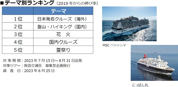 2023年夏休み 旅行動向 【海外旅行】台湾、ヨーロッパ、韓国が好調 コロナ前を上回る方面も 【国内旅行】 夏祭り、花火、国内クルーズ、ハイキングが人気