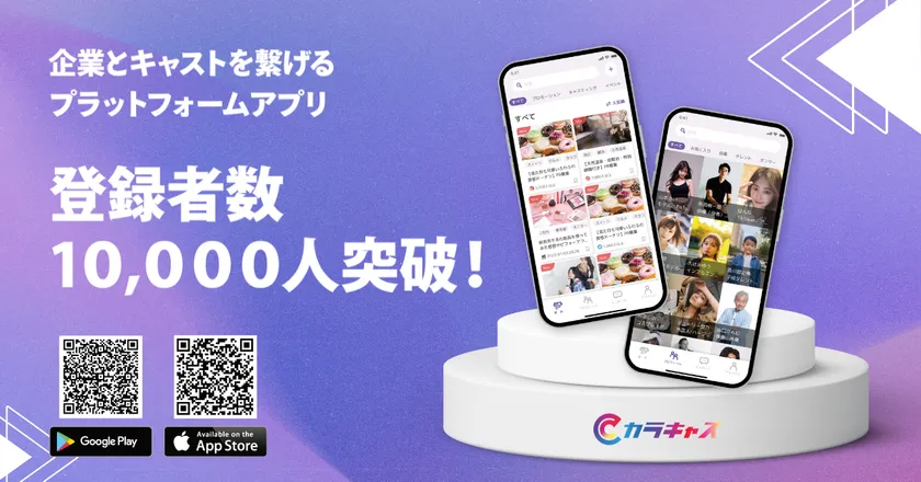 カラフルキャスティング株式会社(本社:東京都渋谷区、以下『カラキャス』)は、企業とキャストを繋げるプラットフォームアプリ『カラキャス( https://colorfulcast.com )』において、登録者数が10,000人を突破したことをお知らせいたします。