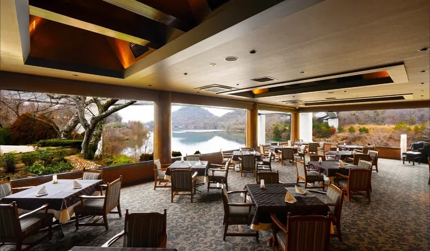 三田屋 金仙寺湖畔DCの店内。ピアノ演奏が流れる中、最高級ステーキのコースを楽しめます