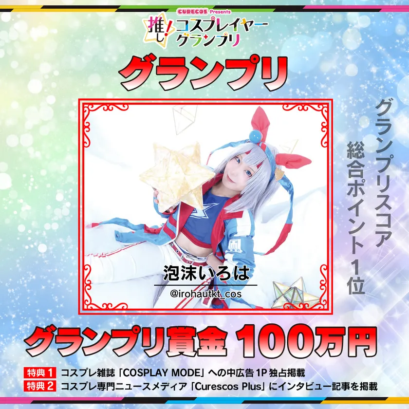 推し!コスプレイヤーグランプリ実行委員会は、グランプリ賞金100万円(賞金総額200万円)の『推し!コスプレイヤーグランプリ』を開催し、グランプリ並びに各賞の受賞コスプレイヤーが決定いたしました。