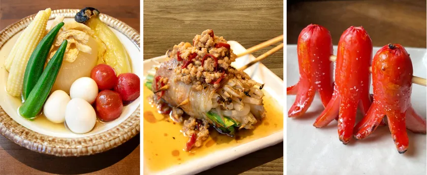 その他にも、さっぱりとした口当たりが人気な「新生姜の肉巻き」や、見た目もかわいく懐かしい「タコさん赤ウインナー」などの創作メニューも人気です。