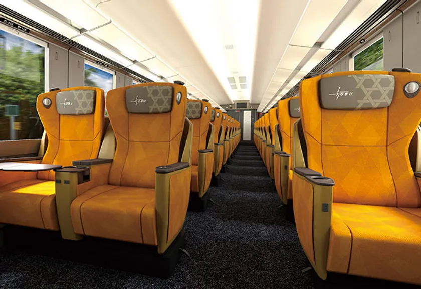 「走るスイートルーム」をコンセプトにした6号車のコックピットスイートと1号車のカフェラウンジで使用されている最上級のソファやテーブル、照明を完全受注生産にて販売します。