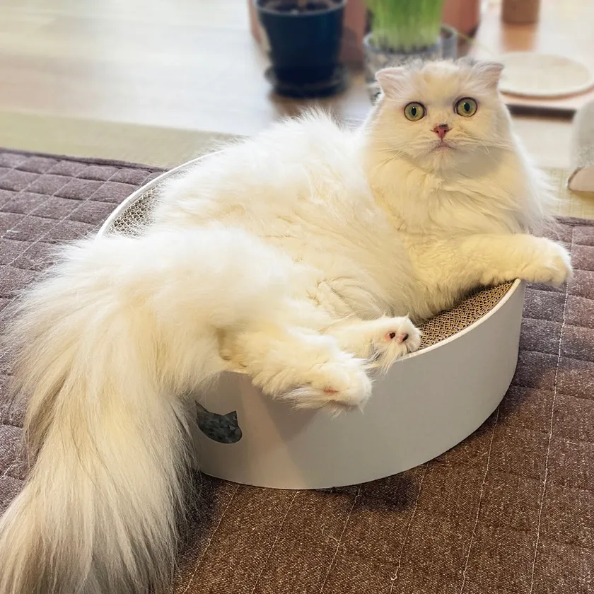 ■8の字のなめらか曲線が、猫のやわらかなからだにフィットする「バリバリベッド8」