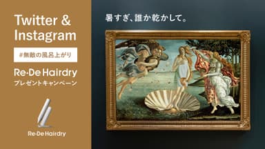 より多くの方に心地よいお風呂上がりを体験いただくため、「Re・De Hairdry」が叶えるお風呂上がりの時間を「#無敵の風呂上がり」とし、「Re・De Hairdry」と、真夏の汗ばむお風呂上がりを心地よくサポートするアイテムが当たるプレゼントキャンペーンを、A-Stage公式TwitterとRe・De公式Instagramにて実施します。