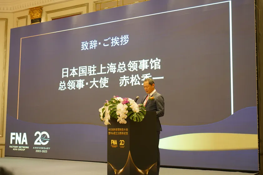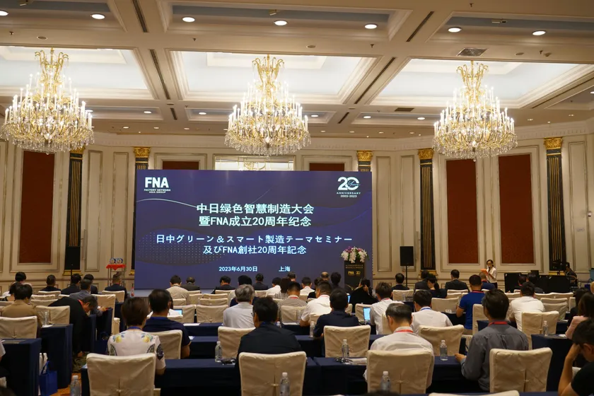 工場網信息科技(上海)有限公司(以下 FNA)は、2003年の創業以来、「ビジネスマッチングを通じて、ものづくりのあらゆる可能性を最大限に引き出す」という理念のもとに、日中製造業の発展を支援してまいりました。2023年、FNAは設立20周年記念行事として、在上海日本国総領事館、日本貿易振興機構(JETRO)上海事務所、日中経済協会上海事務所、上海日本商工クラブとの共同で、6月30日に上海虹橋錦江大酒店で「日中グリーン&スマート製造テーマセミナー」を開催しました。当日はオフライン側約150名、オンライン側約350名、合計約500名の製造業企業家を迎え、日中が協力して発展できる新領域について情報共有の場を提供しました。
