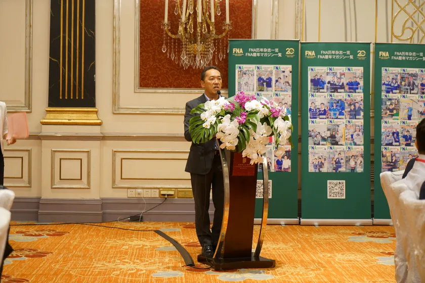 続いて、FNA総経理 YUJIE氏が登壇し、多くの日中製造企業及び各団体機構の20年にわたるご愛顧とご協力に感謝の意を表し、代表である共催団体、FNA会員企業及びFBC出展企業にトロフィーと感謝状を贈呈しました。