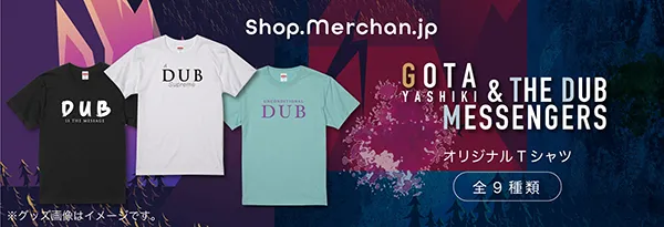 「Gota Yashiki & The Dub Messengers」Billboard Live公演を記念して、株式会社阪神コンテンツリンクでは、オリジナルグッズ(Tシャツ)をオンラインショップ【Shop.Merchan.jp(ショップ・マーチャンドットジェイピー)】にて、7月7日(金)12:00より販売いたします。ここでしか手に入らないグッズですので、是非この機会にお買い求めください!