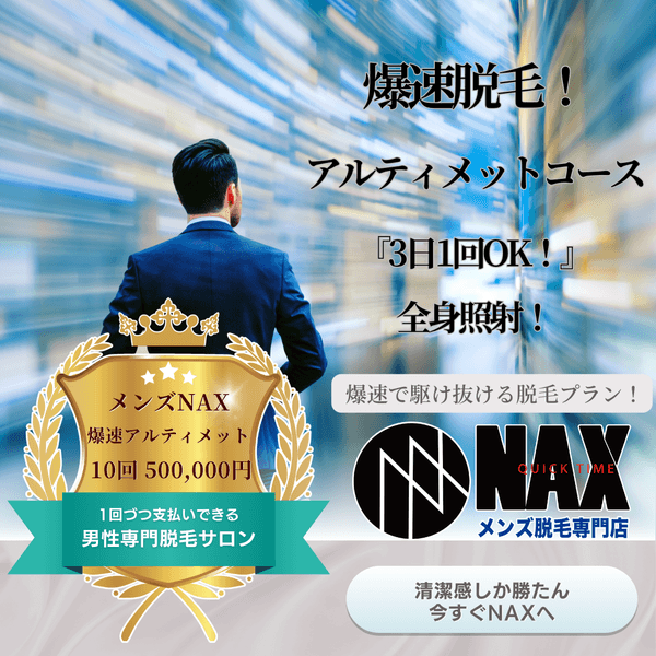 そんな方におすすめなのが、メンズ脱毛サロンNAXの『爆速アルティメットコース 10回コース』!