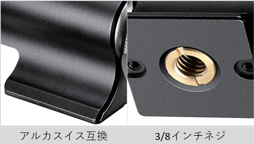 <取り付け方は3/8インチネジかアルカスイス互換の2通り>
