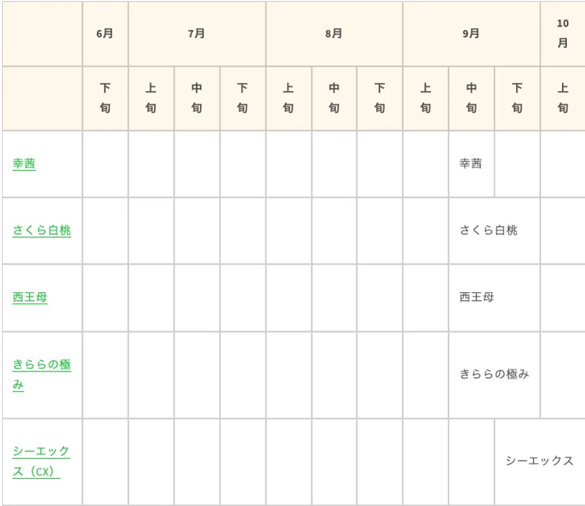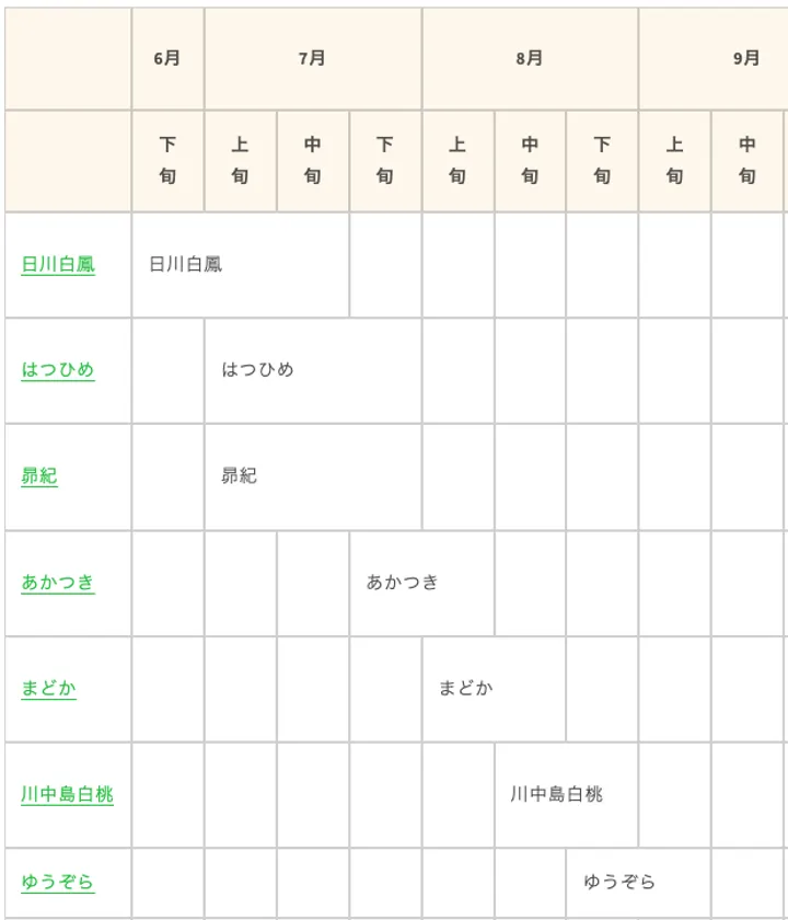 主に福島の桃は7月下旬頃から販売が始まり、10月上旬頃まで販売されます。