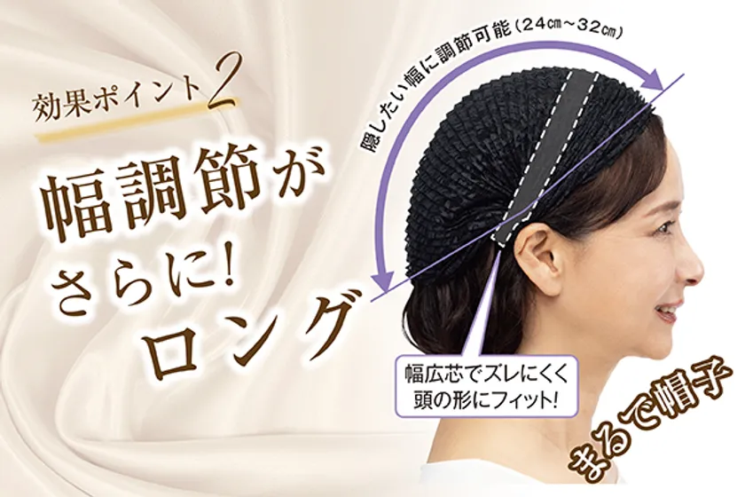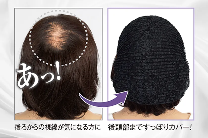 髪の後ろまですっぽりカバーするので、頭頂部から後頭部までしっかりカバーできます。