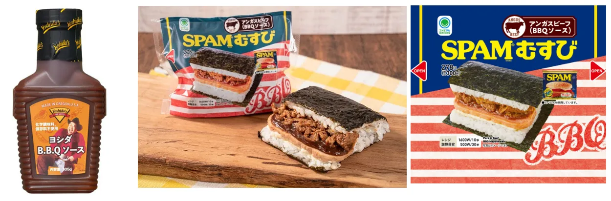このたび、ファミリーマートの「SPAM(R)むすび」の発売2周年と累計販売数5,000万食を記念して、「SPAM(R)むすびアンガスビーフ(BBQソース)」を発売いたします。米国農務省が認めたプログラムにより選ばれた、肉質の良いお肉であるアンガスビーフと、アメリカ生まれのBBQソースであるヨシダソースを使用しました。SPAM(R)とアンガスビーフがコラボし「肉×肉」のボリューム満点の「SPAM(R)むすび」に仕上がりました。