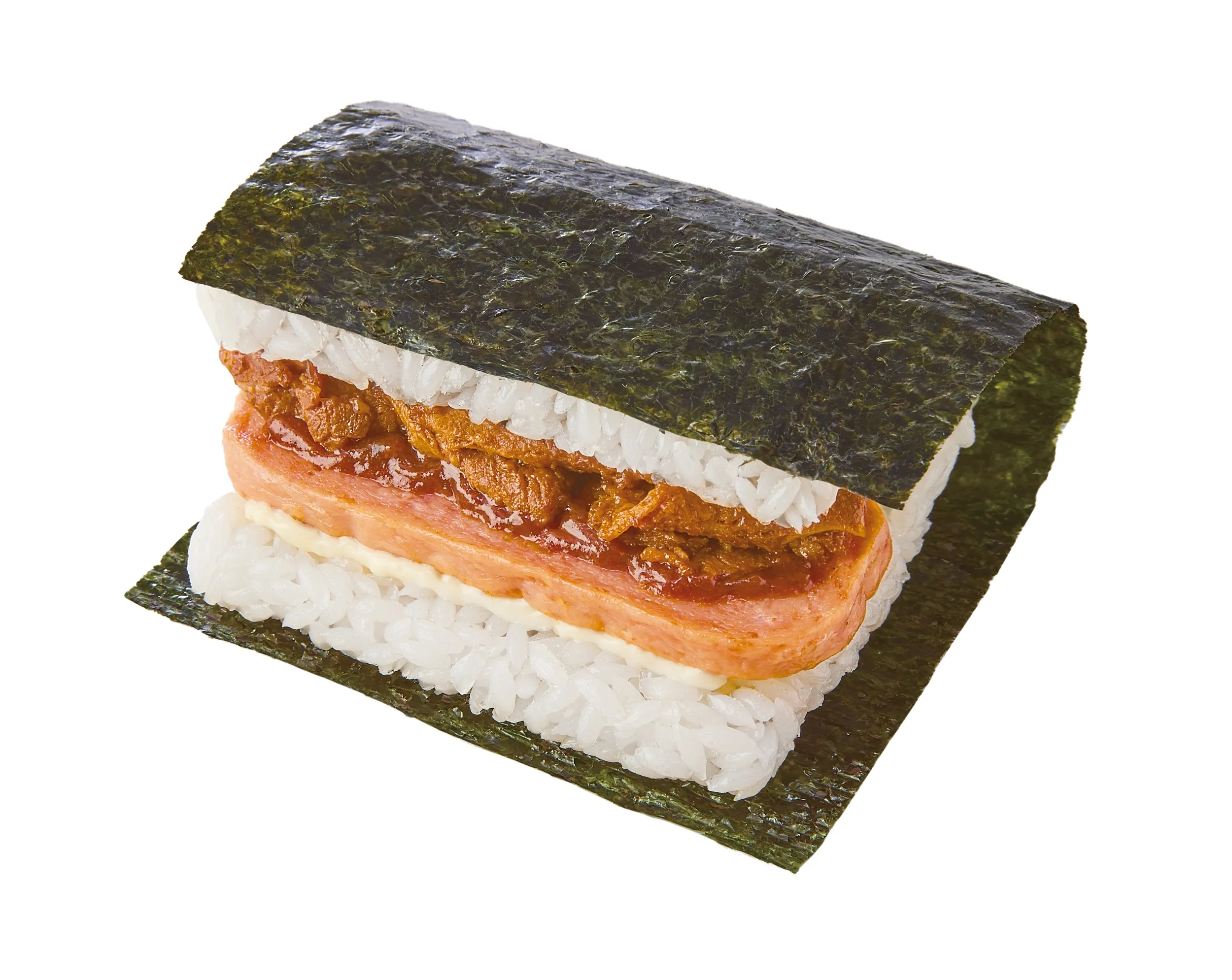 【内容】発売から2年間、ご好評いただいている定番メニューです。ホーメルフーズ社の「SPAM(R)」と、玉子シートをはさみ、ツナマヨネーズをトッピングした食べ応えのあるおむすびです。