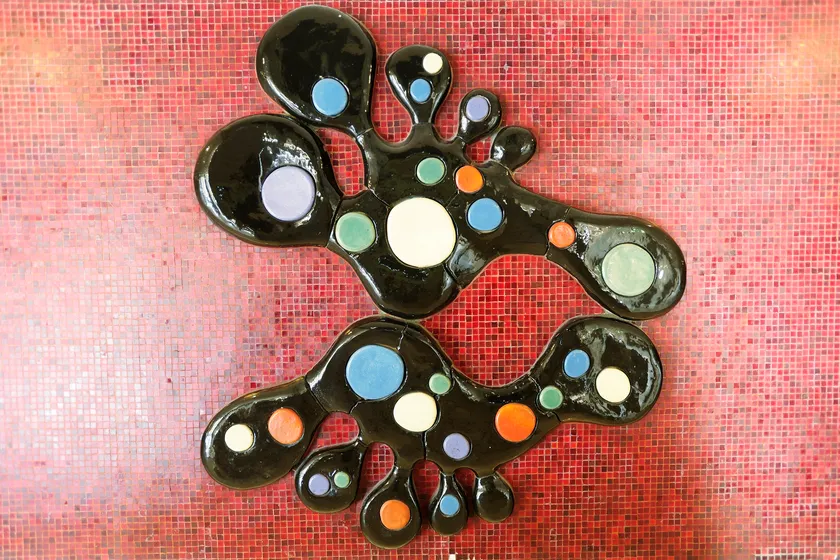 大塚製薬株式会社Hi-zタワー「いのち躍る」 1983年(2000年改修) 原画:岡本太郎/製作:大塚オーミ陶業株式会社