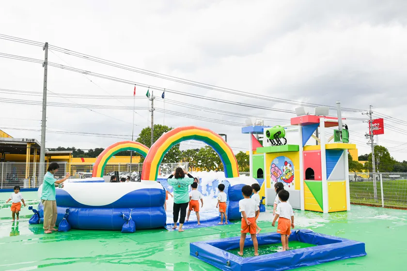 外の新エリア「超たのしいキッズガーデン」に、バブル(泡)やミスト、シャボン玉をふんだんに使用した新規アクティビティが登場!子どもも大人もあわあわになって楽しめます。