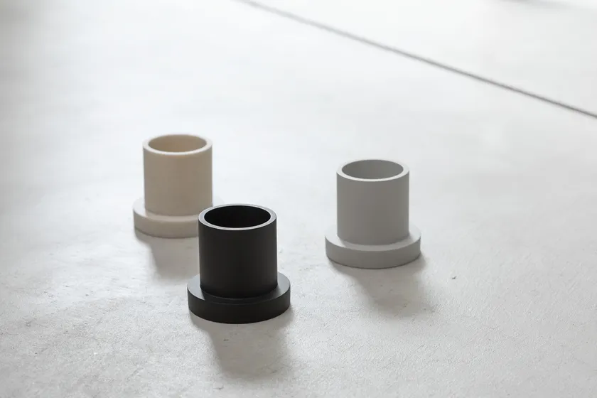 素材は石のような重さが特徴のポリストーン。ポリエステル樹脂に、廃材の炭酸カルシウムや天然石パウダーを混ぜた環境に配慮された材料です。