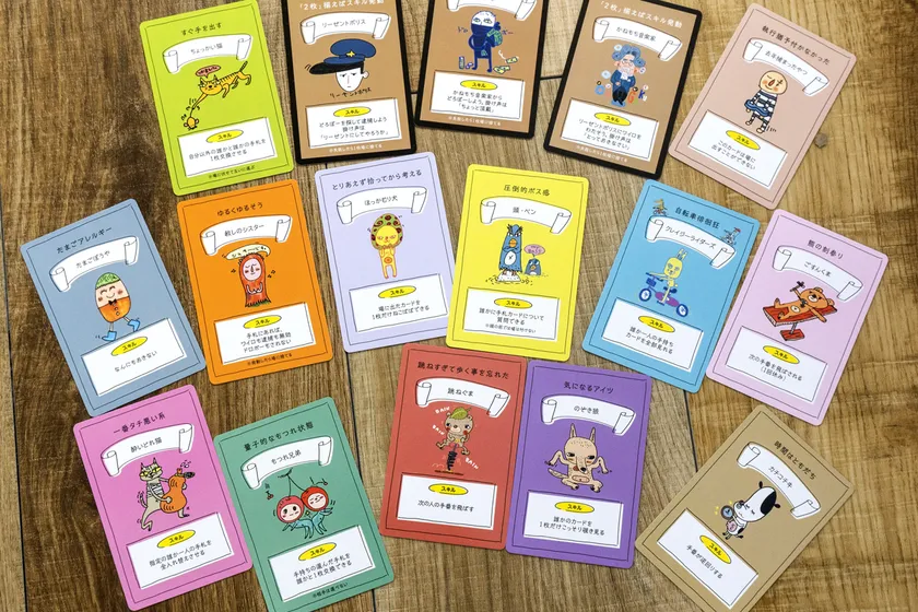 カチコチウシのカードには、時間が巻き戻り「手番が逆回り」になるというスキルがあります。ゲームは、それぞれのカードに描かれたキャラクターのスキルを上手に使って、相手のカードを推理し勝敗を決めます。