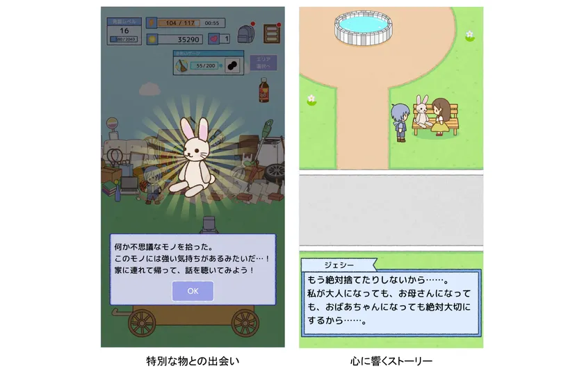 困っている人に物を届けたり、物たちに新しい持ち主を探してあげたり、ほっとする楽しみも満載です。