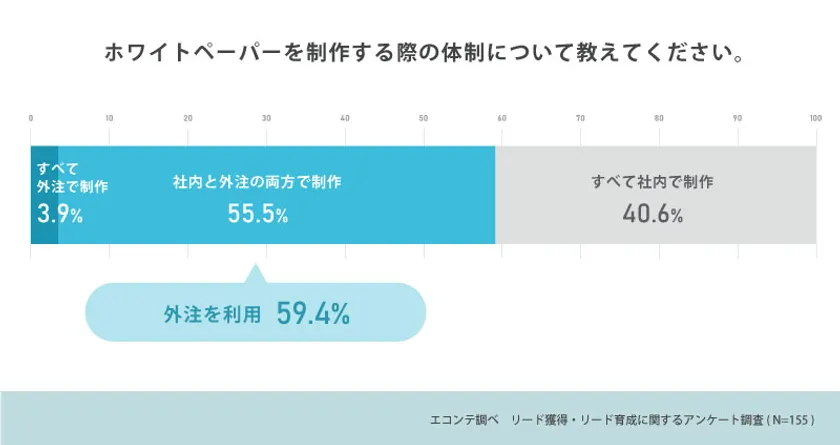 ホワイトペーパーを制作する際の体制について尋ねたところ、59.4%が外注を利用していると回答。