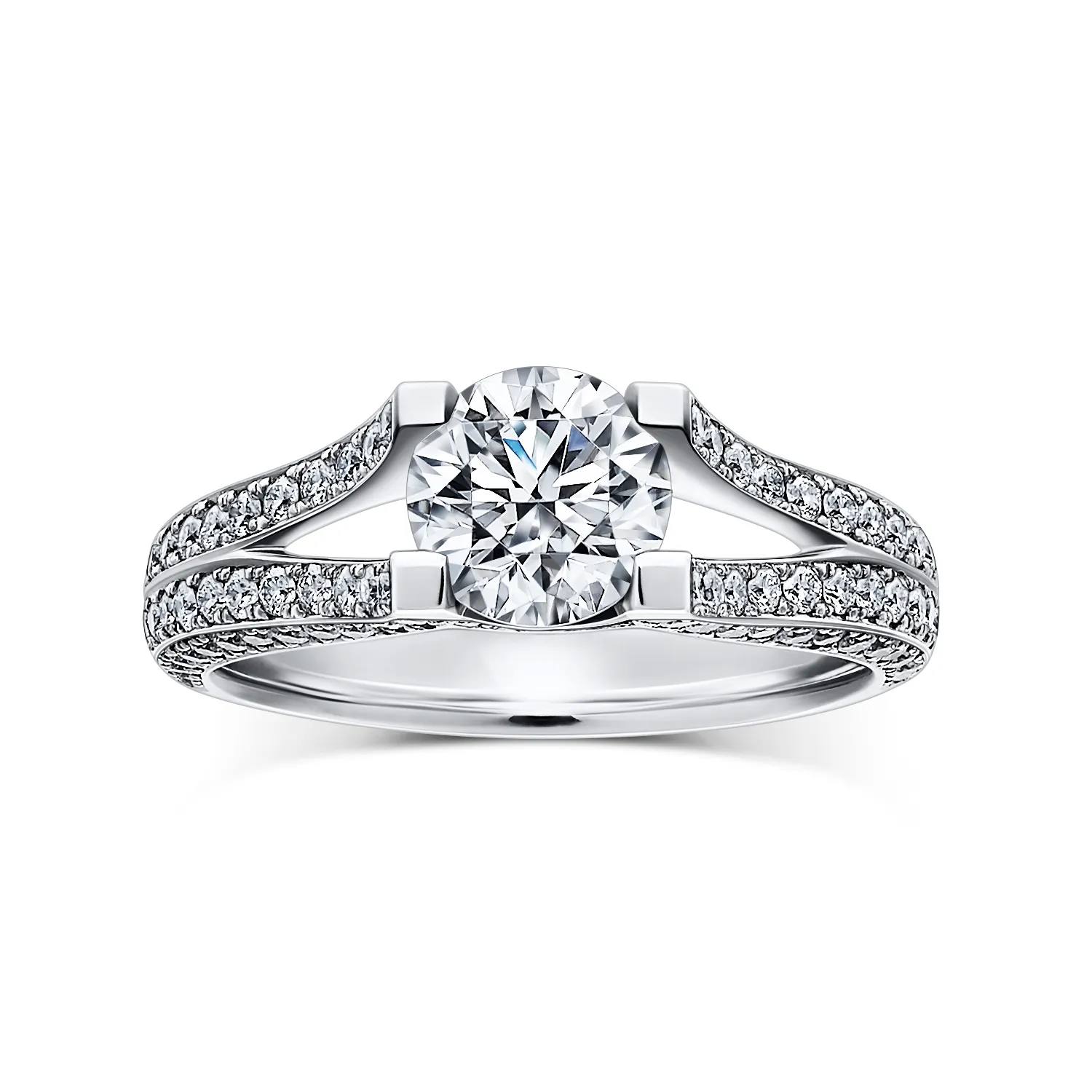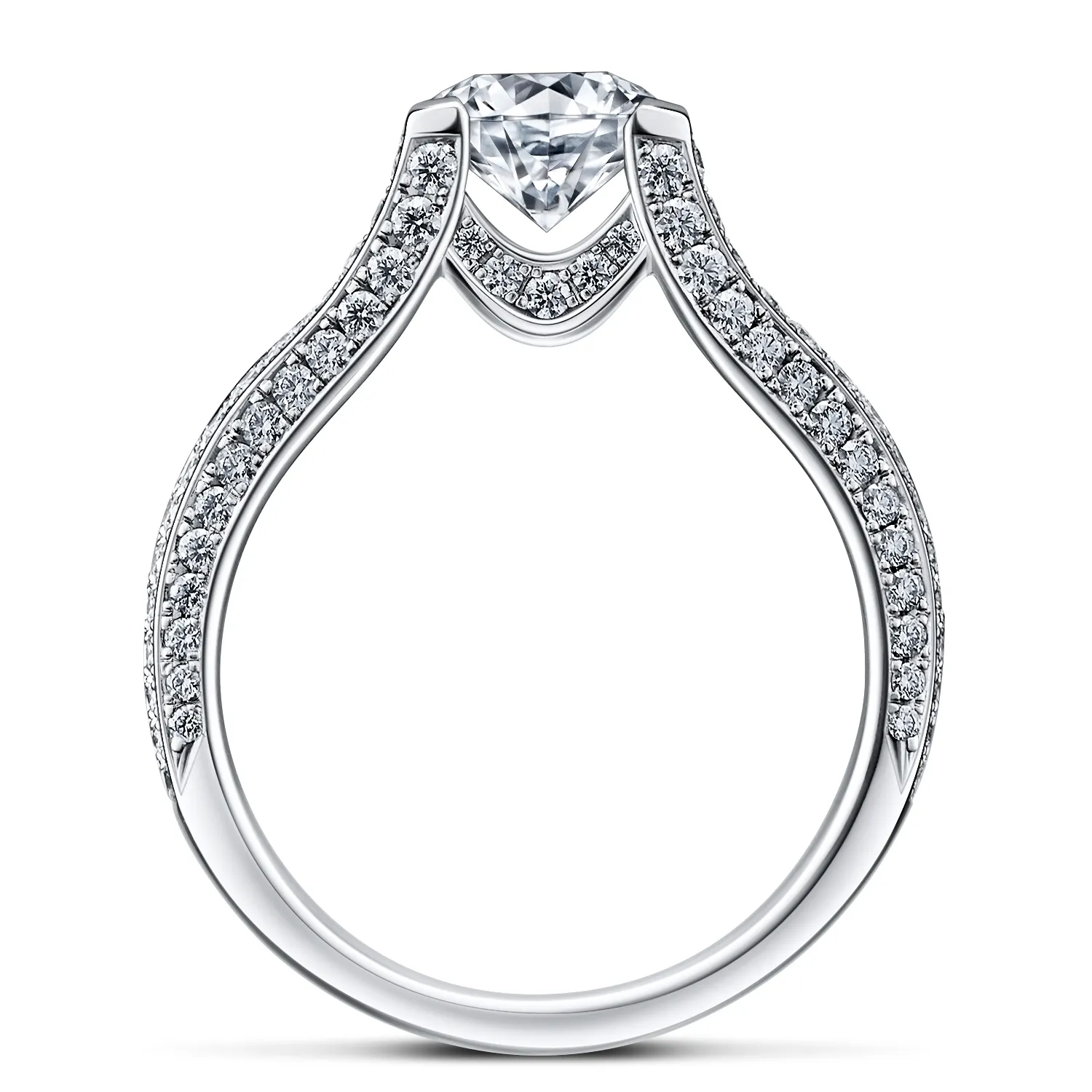 輝きで埋め尽くされたアームがダイヤモンドを天空へと掲げる姿は、NYの美と洗練が到達したラザールの象徴そのもの。サイドビューの美しい曲面や整然と連なるメレダイヤのきらめきが、これまでにない感動をもたらします。