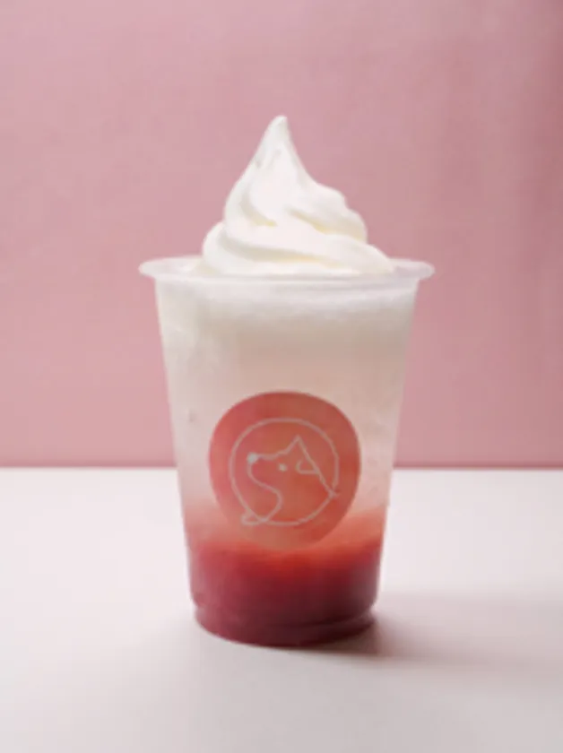 贅沢に乗せられたソフトクリームに、甘さがぎゅっと詰まった苺の果肉とそれを引き立てるサイダーが絶妙にマッチ。てっぺんのソフトクリームから食べるもよし、まずは苺ソーダを味わうもよし。それぞれの美味しさを堪能できる一品です。夏の暑さも吹き飛ぶ、味わい深くも清涼感のあるデザートドリンクです。